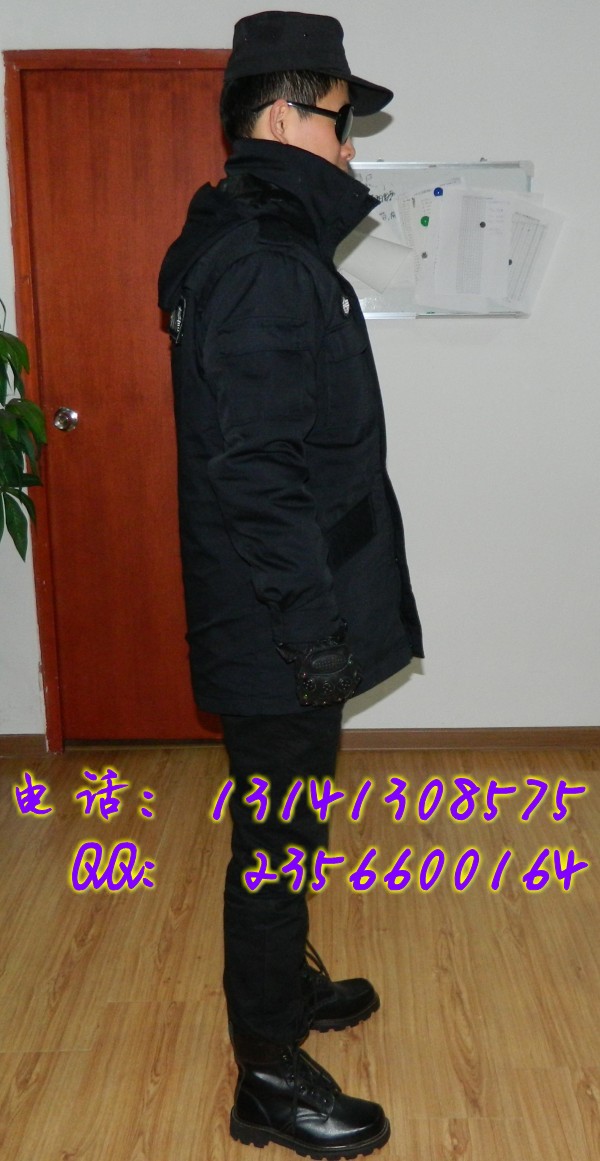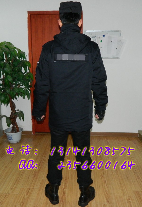 公安部99式警服工艺标准和技术要求,采用国际通用的元青色,特征明显,经过防尘、抗静电、防褪色特种工艺加工,特殊的处理还避免了作战时服装摩擦产生声响,具有更好的隐蔽性,较强的抗撕拉、耐磨性,可适应高强度训练及恶劣环境作战;作战服的多个装备兜及隐藏兜,可使我们携带多种装备;配有可突出特警气势的臂章及胸标,并且根据作战环境的需要,臂章可随时摘卸。内穿式的肘、膝部防护垫,对干警的肘部和膝部具有超强的保护作用,可有效防止肘、膝受伤。裤腰采用自由伸缩式设计,可使不同腰围的人穿着都非常舒适,可适应高强度训练及恶劣环境作战。