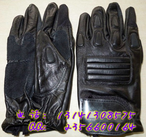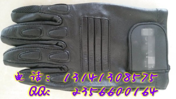 特警作战手套又称战术手套,有全指和半指之分。特警作战手套(全指)采用高档山羊皮制作,手心猪心反绒, 有防滑设计,能更好的握持,有利于抓握东西;手套背面方块护垫,有利于保护手背不受侵害;手背、指背和掌心都缝有厚垫,除了能吸收冲击力,利于格斗外,也适于垂降时使用;手腕部位有调节带;单兵可以根据个人的手腕粗细进行调节,这样更贴和手的尺寸。手套结实耐用,带内衬,戴着舒适,是特警作战及训练的优良装备。
