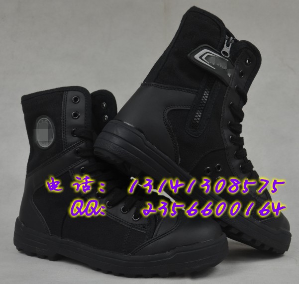 新式作战靴含胶量高,采用真皮和高强度帆布制成,集国际国内作战靴系列优点于一体,其中帆布和橡胶的粘合强度为33.9N/cm.鞋跟,鞋帮,鞋前部,鞋桶等重要部位都采用了加厚牛皮保护,鞋帮增加到七寸高,丛林和特殊环境作战时很好的保护腿部,除采用鞋带松紧外,内侧还加上了进口拉链,方便脱落,无论男女穿着都是很不错的选择。