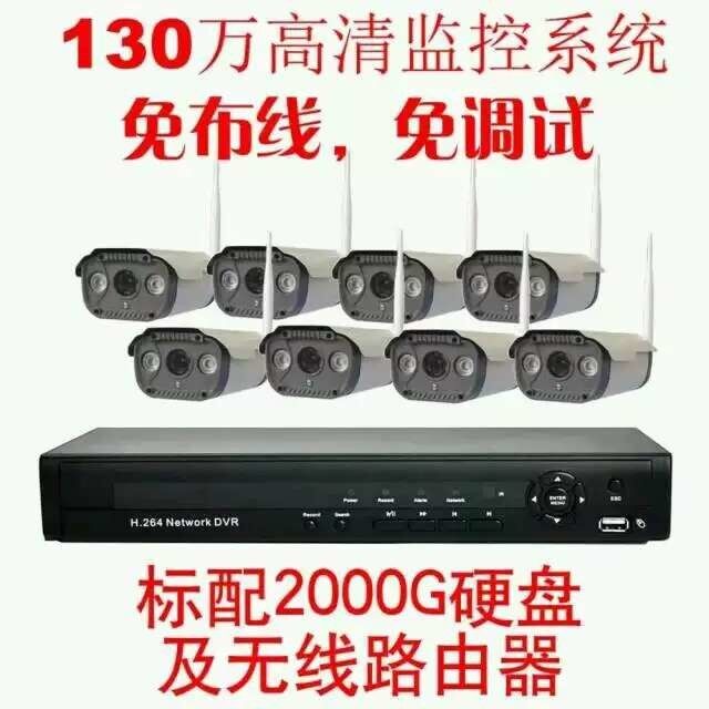 无线高清视频监控 130万高清像素,无需布线,无需调试,标配2000G超大内存硬盘机及无线路由器,夜视就;距离10-80米,镜头4-16MM