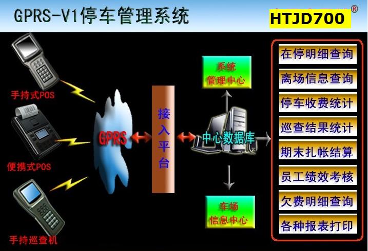 互联网GPRS式停车管理系统由停车收费管理中心和GPRS手持机组成。该套系统的终端设备机除具备自动计费、刷卡收费、多种模式设置等20多种普通功能外,还能将停车信息通过GPRS互联网实时传送到后台管理中心。
