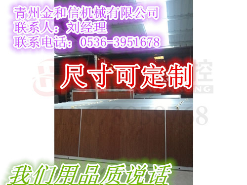 水帘纸|湿帘纸|水帘纸生产厂家|降温水帘|水帘纸价格|优质水帘纸批发-青州市金和信机械有限公司 水帘纸主要性能特点:1.新材料与空间交流技术,高吸水、高耐水、抗霉变、耐腐蚀、使用寿命长;1.蒸发比表面大,降温效率达80%以上;3.含表面活化剂,自然吸水,扩散速度快,效能持久,一滴水4-5秒钟即可扩散完毕,自然吸水高度60-70mm/5分:200mm/1.5时,完全达到国际同行业标准;4.不含易使皮肤过敏的苯酚等化学物质,安装使用时对人体无毒无害,安全、节能、环保、经济适用;5.外框尺寸:镀锌板、不锈钢、铝合金等多种材质,有效方便客户的选择。6.外表颜色:棕色、绿色、棕绿交错色、单面黑色(可清洗)等多种颜色。 青州市金和信机械有限公司,位于山东省青州市。我公司是一家专业生产销售风机、水帘、暖风炉、水暖炉、上料机、蛋肉鸡笼、水线料线、通风窗、冷风机、清粪机、温控箱的厂家。主要产品有:推拉式高档风机、重锤式风机、普通风机,镀锌板水帘、铝合金框体水帘,暖风炉、水暖炉、水风两用炉、燃油炉等升温设备,主要用于养殖和花卉苗木种植行业。 公司一贯坚持"质量优越,用户至上,优质服务,一诺千金"的宗旨,凭借着高质量的产品,良好的信誉,优质的服务,产品畅销全国近三十多个省、市、自治区以及远销中东、东南亚等国家。青州市金和信机械有限公司欢迎你的垂询采购。 青州金和信机械有限公司 联系人:刘经理 联系电话:0536-3951678 网址:jinhexinjixie 地址:青州市经济开发区徐七村