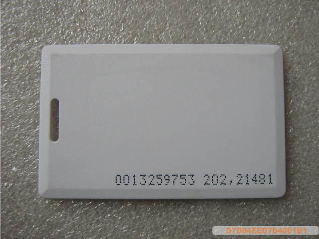 ID厚卡:厚度1.8mm,标准卡尺寸大小,是目前最经济的射频IC卡片带有ID号码,带有一个便携孔,可以丝网印刷 LOGO 文字信息;