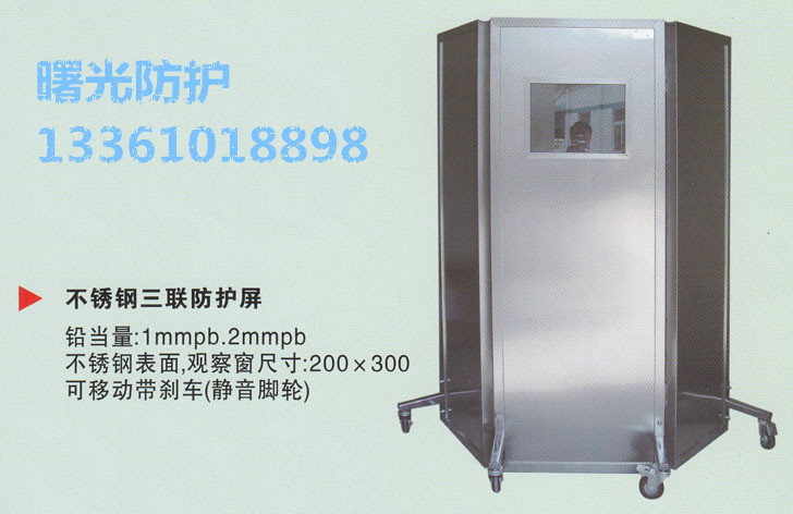 (1) 屏蔽作用:外面为不锈钢钢板,一般尺寸大小为高2150mm*宽1300mm*厚100mm,内设龙骨,衬2-3mm屏蔽板(根据不同的科室的射线仪有不同的材料要求与厚度要求),使工作人员剂量达到国家管理目标值。