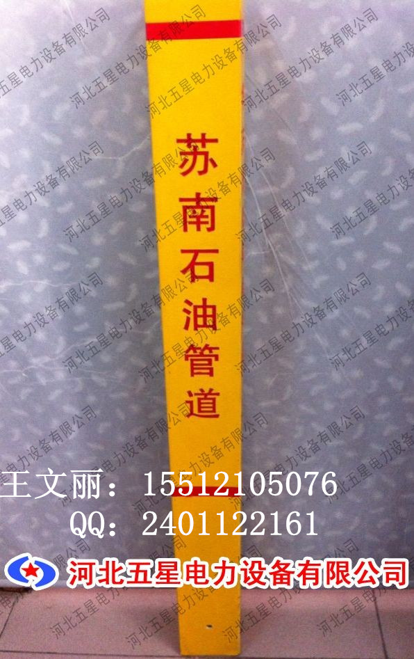 六河北五星玻璃钢复合材料标志牌质量轻,适于搬运,安装简单防偷盗,该材料无回收价值,自然防盗,可以有效解决地下重要设施被挖掘的问题,具有较大的社会效益和经济效益。