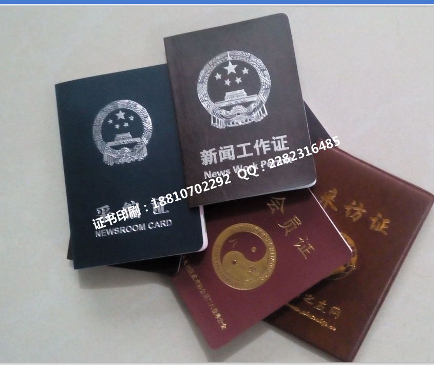 a大证书32开以上一般热合(塑料仿皮材料加热加压合成封皮,用塑膜做套来夹放内芯。)、缝线(仿皮材料居多,四周缝线内用光丝带做斜角,也有用透明膜做成夹层,插页式放置内芯。)、裱糊(以胶化材料,绒面材料,锦缎材料为主,内用光丝带做斜角。如荣誉证书)。封皮表面烫压证书类名(如:荣誉证书,资格证书,会员证书,入股证书);徽标;颁发证书单位或审批主管单位。以烫金,烫银和压痕为主。