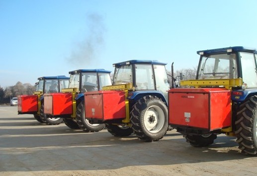 4、机组经合理设计布装后重心居中,并为增加整机牵引力选装前后桥配重系统(其中前配重10块)。