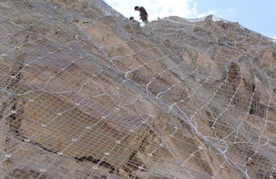 坡面加固,抑制崩塌和风化剥落,溜塌的发生,限制局部或少量落石运动范围,有小块落石或上质边坡时选用。能满足可达100年的防腐寿命要求,但其加固能力仅为70%-80%左右,不适于体积大于1m3的大块孤危石。