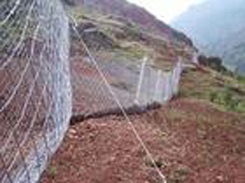 SNS柔性被动防护系统适用于建筑设施旁有缓冲地带的高山峻岭,把岩崩、飞石、雪崩、 泥石流拦截在建筑设施之外,避开灾害对建筑设施的毁坏。主要产品有以下几种类型:P1型:单层斜拦截(h < 100m)。工字钢柱、拉锚系统、支撑绳、减冲环、钢丝绳网.P2型:复式拦截(h < 100m)。 P3型:通道式拦截(道路两旁,一边是陡壁,一边是深渊)。本系统以崩塌落石的冲击动能作为工程施工的设计选型依据,避免了刚性坡面防护设计中,参数与防护等级不相称或相差较大等缺点,针对不同的防护等级,公司开发设计出不同能量等级的产品与之相配套。防护能量从250-3000KJ,并已能对高达5000KJ的更高能级进行特殊防护。被动防护系统在材料的设计上考虑了易于安装,即用最少量的锚杆和最少量的开挖来实现最快速简便的施工安装。系统部件全部实行标准化的工厂生产,现场施工除少量的以锚杆安装为主的基础施工外,主要为积木式的安装作业,施工安装和维修人员仅需要少量常规机具即可进行系统的安装、维修和部件更换。