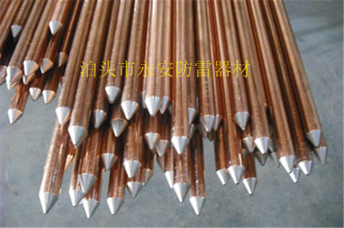 铜包钢接地棒是选用柔软度比较好,含碳量在0.10%-0.30%优质低碳钢,采用特殊工艺将高导电的电解铜均匀的覆盖到圆钢表面,厚度在0.25-0.5mm,该工艺可以有效的减缓接地棒在地下氧化的速度,此接地棒可分为单根的和组合的两种,单根的可以一头尖一头平,可以一头尖一头轧辊上螺纹,组合的两头需要轧辊上螺纹,螺纹是采用轧辊螺纹槽加工螺纹,保持了钢与铜之间紧密连接,确保高强度,具备优良的电气接地性能。镀铜接地棒相对于纯铜棒节省铜材料,节省成本,导电性相同,并含有铜的硬度。镀铜接地棒主要用于防雷接地方面,可降低阻值。产品铜层牢固,耐腐蚀强,降阻效果明显,使用期限长,50年不腐蚀。