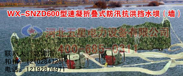 速凝固体折叠式挡水坝(墙)研制思路新颖、结构合理、安全可靠。是我国防汛抗洪行业防止洪水漫顶、抗御风浪、快速有效的一种新技术和新产品.在我国防汛抢险中有广阔的应用前最。该产品国内首创,总体技术达到国内先进水平。它使抗洪抢险的防洪水漫溢技术提高到一个新的技术水平。河北五星电力设备有限公司WX-SNZD600型速凝固体折叠式挡水坝(墙)产品的成功应用,将给我国抗洪抢险带来较大的社会效益和经济效益