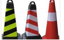 欧式路锥使用硬体的吹塑PE路锥,美式路锥使用软体PVC路锥。