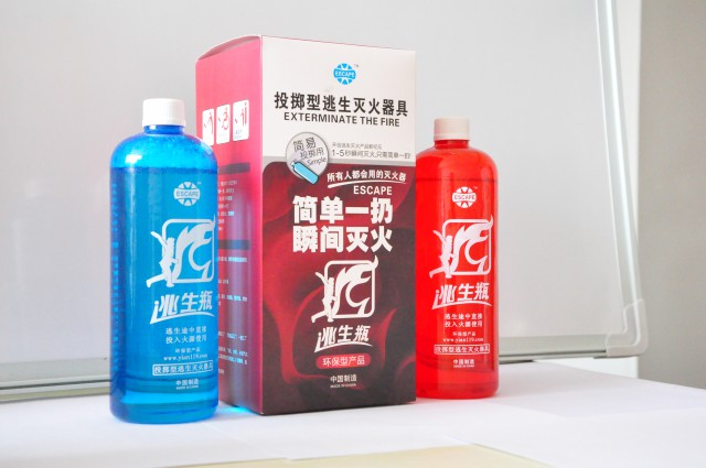 3、冷却效果:ESCAPE灭火瓶中的液体从被投掷到火源附近的树脂瓶内飞散而出。此时,水分瞬间蒸发而使燃烧物迅速冷却,同时遇热后产生的an气,也起到了降温的效果。
