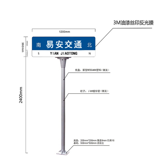 3、国家标准路名牌表面铝板阳级氧化抗老化和酸碱腐蚀。