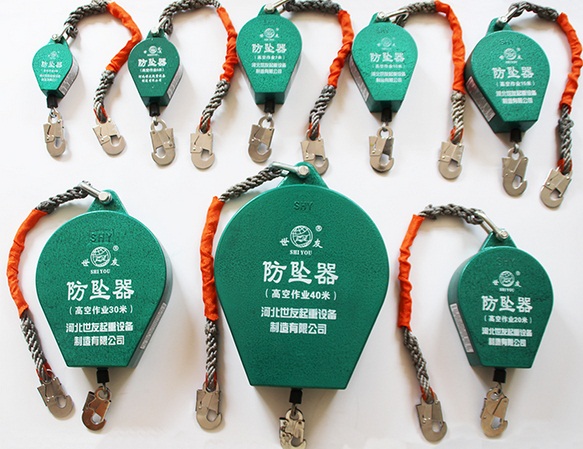 世友防坠器利用物体下坠的速度差进行自控。产品高挂低用,使用时只需要将锦纶吊绳跨过上方坚固钝边的结构物上,将安全钩扣住吊环,自控器悬挂在使用者上方,把安全绳上的铁钩挂入安全带上的半圆环内,即可使用,正常使用时,安全绳将随人体自由伸缩,不需要经常更换悬挂位置。