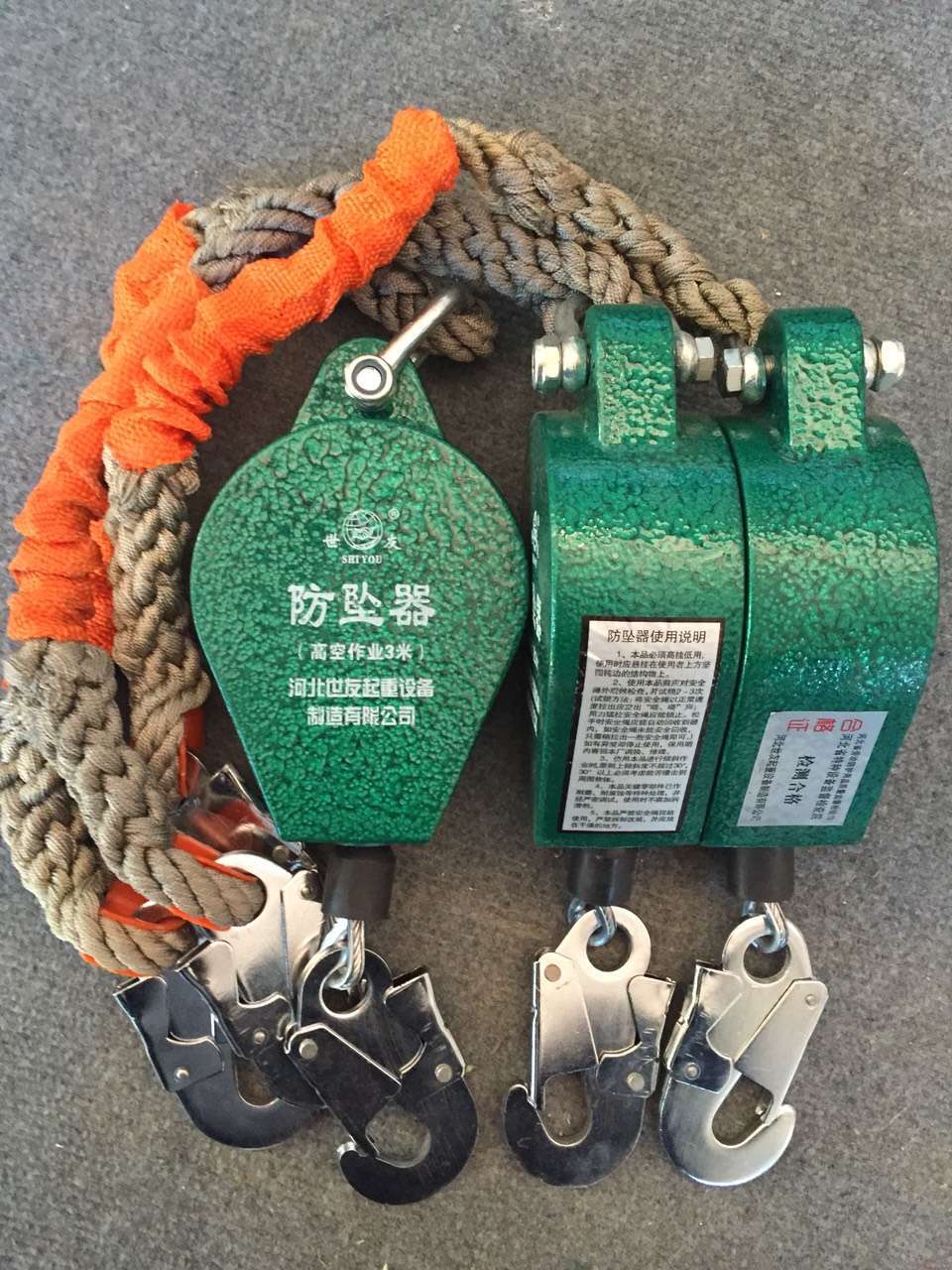 正常使用时,安全绳将随人体自由伸缩,不需经常更换悬挂位置。在器内机械的作用下,安全绳一直处于半紧张状态,使用者轻松自如,无牵无挂地工作。一旦人体失足坠落,安全绳的拉出速度加快,器内控制系统即可锁止,使安全绳拉出不超过0.2m,冲击力不小于3000N,对人体毫无伤害。负荷一解除又能恢复正常。工作完毕,安全绳将自动回收到器内,便于携带。