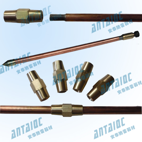 接地棒由棒体、驱动头、连接管、尖端等零件组合而成,棒体两端加工成外螺纹,连接管加工成内螺纹。