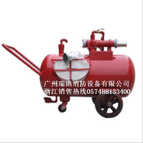 瑞港公司生产的PY系列移动式泡沫罐即移动式泡沫灭火装置,由推车、泡沫液储罐、比例混合器、泡沫喷射设备_泡沫枪_水带、控制阀门及辅助零部件等组成。容积50L-500L,流量4-8(L/S)。