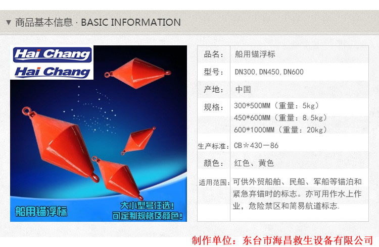 铁锚浮标,是我公司独家设计产品,具有质量优质,经久耐用等优势,价格均为同行业最低,性价比最高的锚浮标,专业指示铁锚具体位置的浮标,欢迎大家来电咨询锚浮标,任何关于锚浮标,铁锚浮标的信息!我们会给予您最满意的答复!