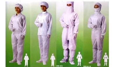 具有高效、永久的防静电、防尘性能,薄滑,织纹清晰的特点。在制作成衣过程中采用专用的包缝机械,有效减少微粒的产生。无尘的粘扣带避免了因掉毛污染环境。根据级别要求提供不同款式,并采用导电纤维缝制,使服装个部分保持电气连续性;袖管裤管为特有的双层结构,内层使用导电或防静电罗纹,从而满足高级别无尘环境的要求。