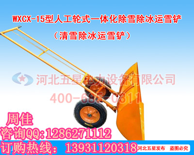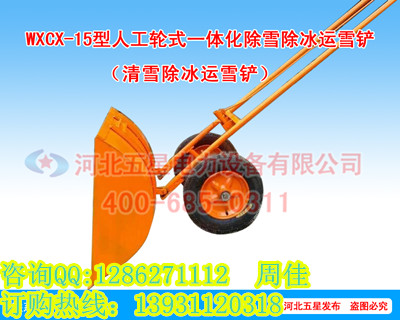今年首批5600台河北五星电力设备有限公司的WXCX--15型人工轮式一体化除雪除冰运雪铲(清雪除冰运雪铲)将在今冬上岗,专门用于人行步道的铲雪作业。通河北五星电力设备有限公司的WXCX--15型人工轮式一体化除雪除冰运雪铲(清雪除冰运雪铲)产品通过新闻媒体和网络进行报道。全国各地的政府机关单位、高速公路、城市环卫、旅游景区、机场、居民区、机关大院、城市道路、人行便道、学校、部队、城市广场、社区等场所,纷纷批量要求订购WXCX--15型人工轮式一体化除雪除冰运雪铲(清雪除冰运雪铲)。