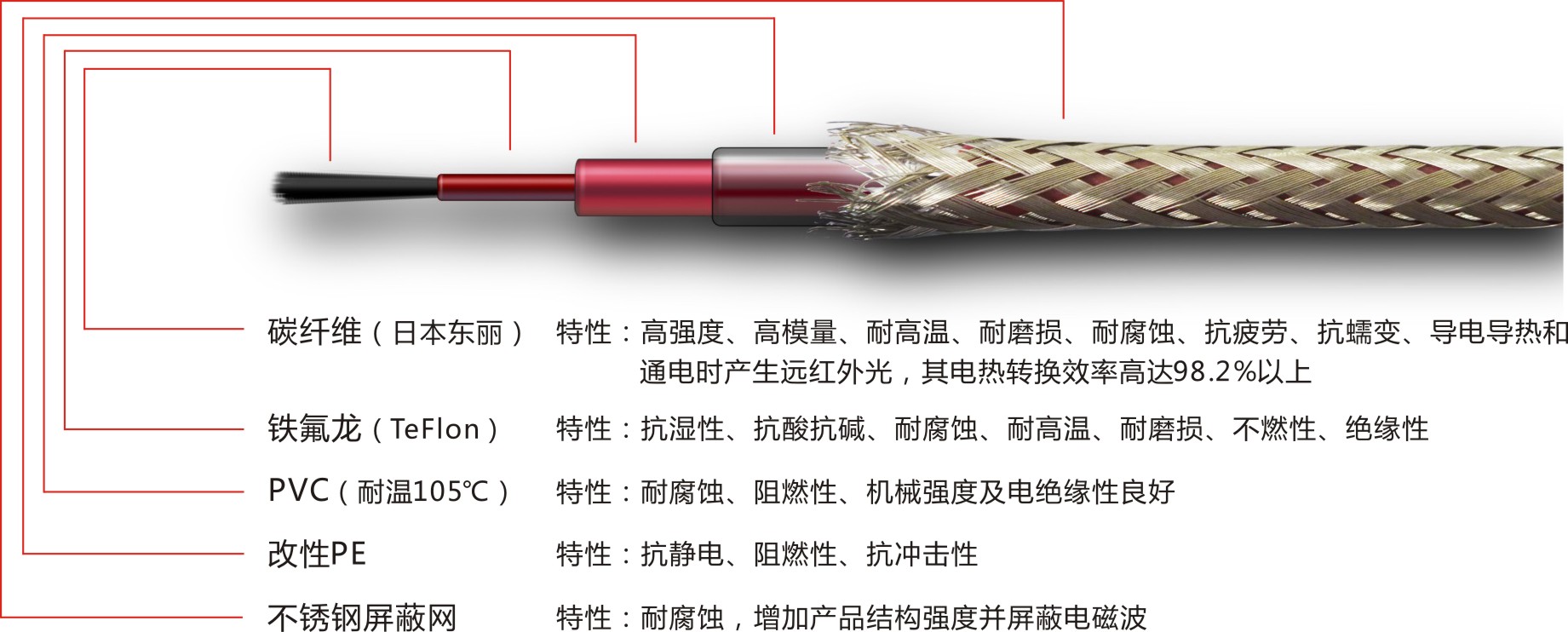 阳光益群碳纤维发热线,分为单层、双层、三层和四层碳纤维发热线。客户可以根据自己的需要选择不同的碳纤维发热线。碳纤维远红外低温辐射发热线是以聚丙烯晴原丝在1000℃以上非氧化性碳化形成的高模量聚丙烯晴基碳素纤维为发热体,由于是非金属材料,与传统的金属电缆有本质上的不同,它完全避免了电磁场的产生,其辐射能量可以达到总供热量的90%以上,寿命可达千年。所以,请相信阳光益群碳纤维发热电缆不会让您失望的。