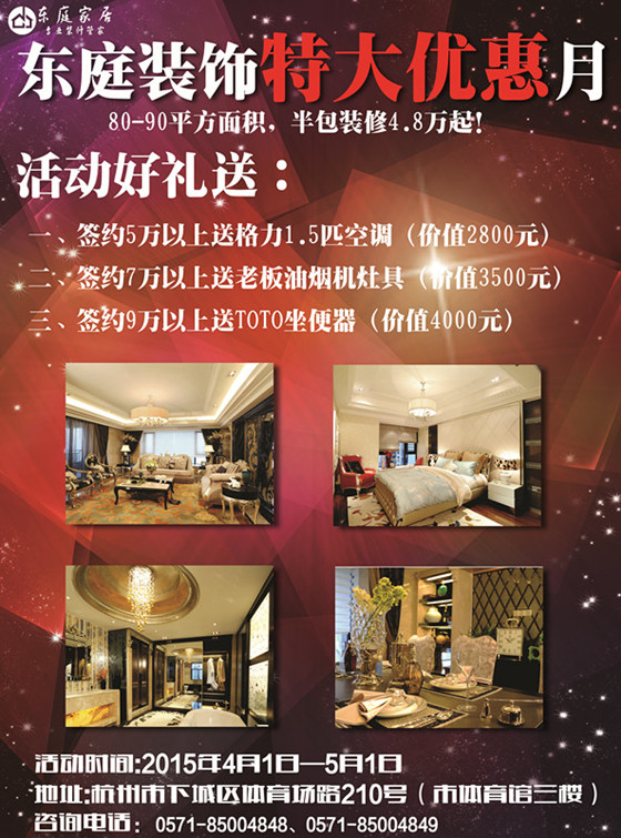东庭装饰可以为您私人定制设计各种风格和需求,半包装修所用材料均为品牌产品:中策永通电线、皮尔萨水管、千年舟EO级、多乐士立邦乳胶漆等等(东庭家居装饰保证假一罚十)
