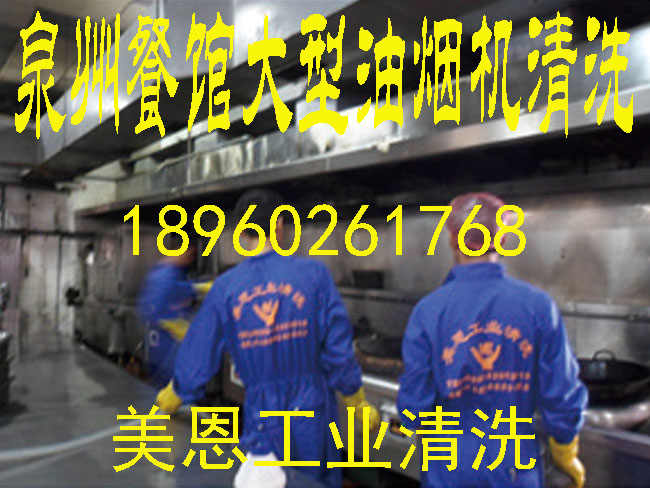 泉州美恩工业清洗科技有限公司(http://www.fjmeien.com电话:0595-22553016,黄先生:18960261768)是泉州首家经工商部门正式注册的专业工业清洗公司,是泉州环保产业协会创会理事单位,是一家立足泉州,面向福建,起点高、技术精、力量足、范围广的科技型企业,专业从事:酒店油烟机清洗、风机清洗、烟罩清洗、烟道清洗、排烟系统清洗、大型油烟机清洗、油烟管道清洗、油烟净化器清洗。