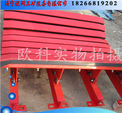 皮带缓冲床可有效的防止坠落货物对输送带产生损伤。可有效使输送带在落料口受力均匀 , 大大降低了日常的修补和维护费用,有效消除因输送带非均匀受力而导致的物料飞溅及散漏。皮带缓冲床采用聚层表面的弧形设计 , 保证了输送带运行的顺滑流畅。缓冲条选用超高弹性特种橡胶层能够最大限度地吸收物料冲击力。