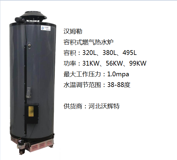 河北汉姆勒容积式燃气热水炉,功率99KW,容积320L