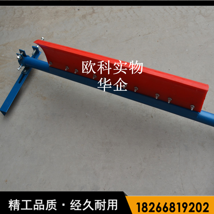 一道聚氨酯清扫器的刮刀材料为高分子聚氨酯,磨擦系数低、高耐磨、高强度,具有稳定的刮料效果,防腐蚀、防断裂又不会伤及皮带。