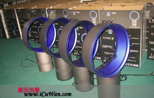 酷玩无叶片风扇于2009年10月12日在英国首度推出,这项发明的灵感源于空气叶片干手器。空气叶片干手器的原理是迫使空气经过一个小口来“刷”干手上的水,空气增倍机是让空气从一个1.3毫米宽、绕着圆环转动的切口里吹出来。由于空气是被强制从这一圆圈里吹出来的,通过的空气量可增到15倍,它的时速可增至35公里。空气增倍机的空气流动比普通风扇产生的风更平稳。它产生的空气量相当于目前市场上性能最好的风扇。因为没有风扇片来‘切割’空气,使用者不会感到阶段性冲击和波浪形刺激。它通过持续的空气流让你感觉更加自然的凉爽。”