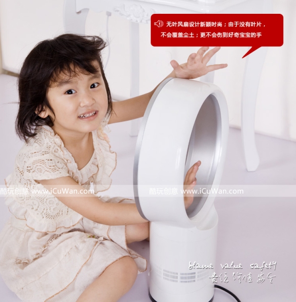 酷玩无叶风扇设计新颖时尚,因为没有风叶,阻力更小, 没有噪音,没有污染排放,更加节能、环保、安全。