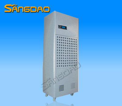 本产品属冷冻式除湿机,整机有压缩机、热交换器、风扇、机壳及控制器组成,其工作原理是:由风扇将潮湿空气抽入机内,经过制冷系统(压缩机,蒸发器,冷凝器)相互作用下凝结成霜,系统自动升温化霜成水流入盛水箱,产生出干燥空气排出,如此循环使室内湿度降低,潮湿空间逐步达到干爽的效果。