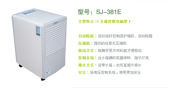 SJ-381E 除湿量:38升/天 适用面积:25~40平方米