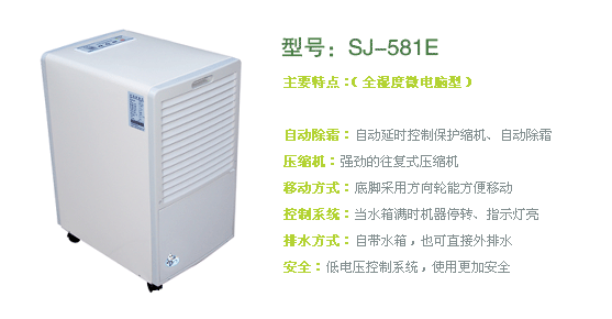 SJ-581E 除湿量:58升/天 适用面积:35~55平方米