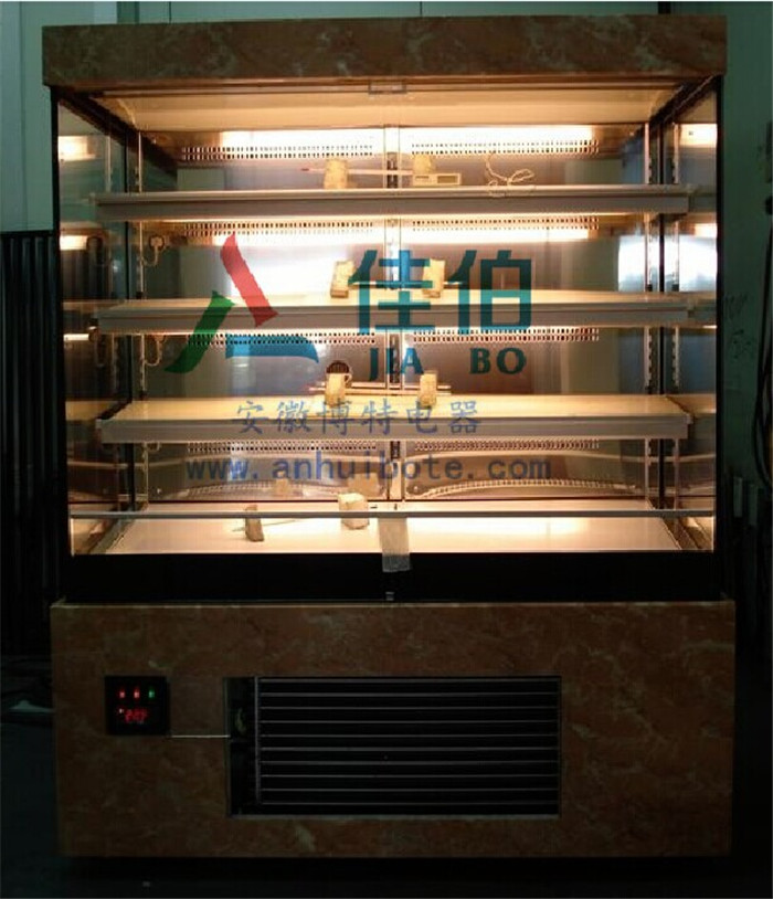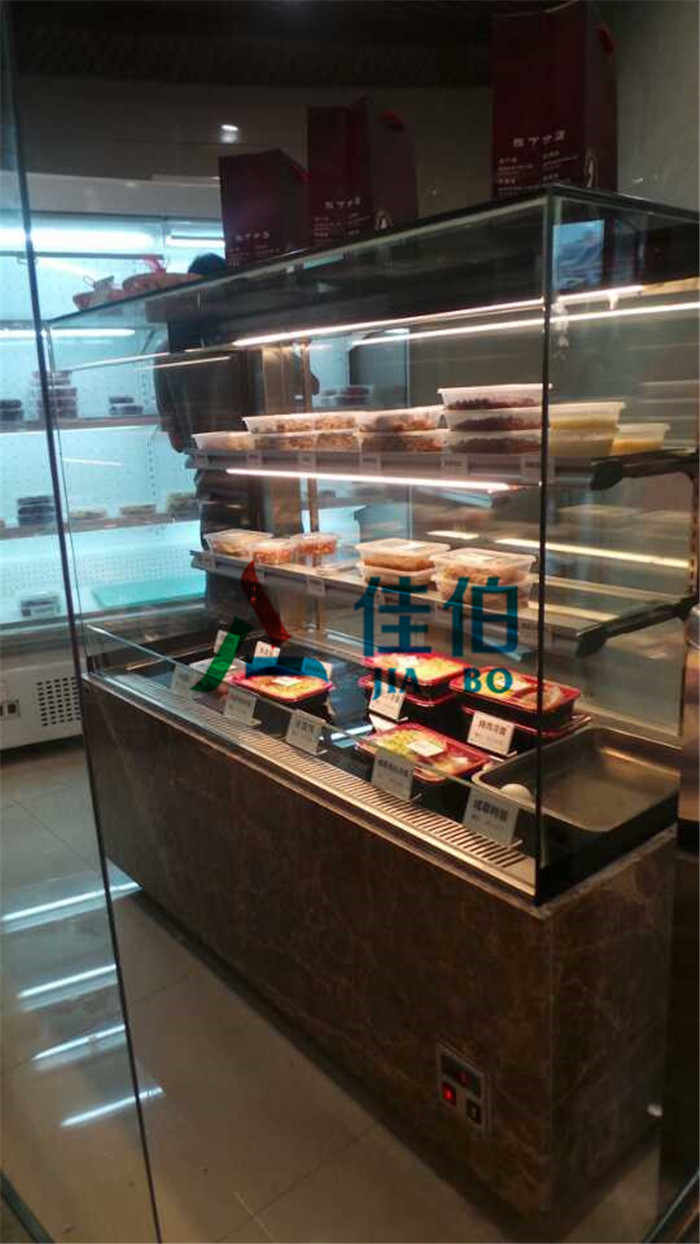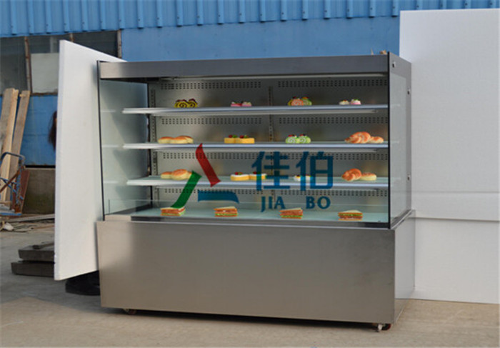 B:构造:采用开放式风冷设计,制冷均匀,更好的起到保鲜功能,利于糕点储藏,开放式设计便于取货放货及自选。