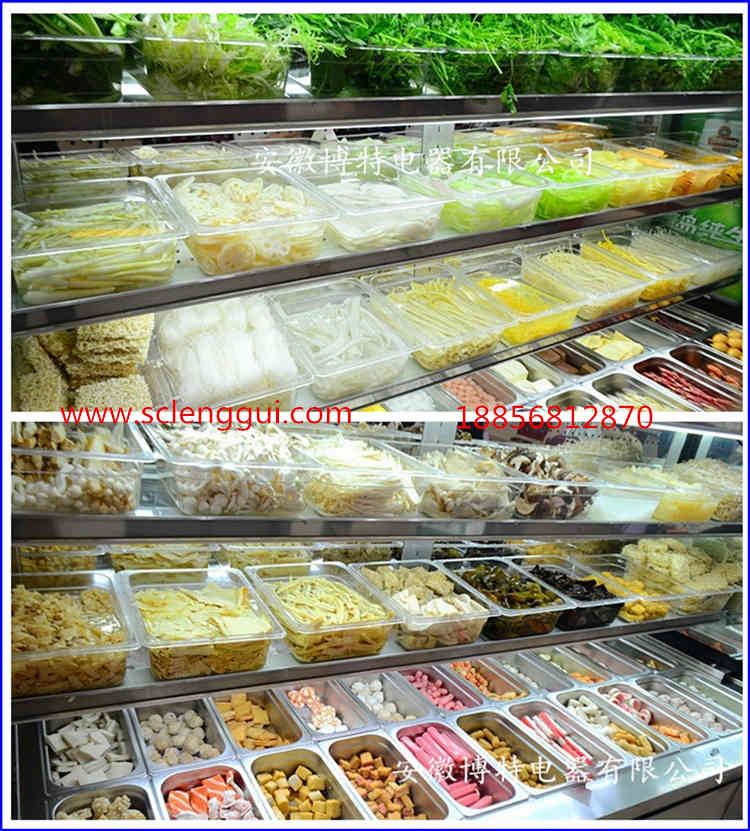 3. 佳伯麻辣烫点菜柜放货时要均匀,别挡住了出风口,避免层板受力不均导致变形,和制冷效果下降。