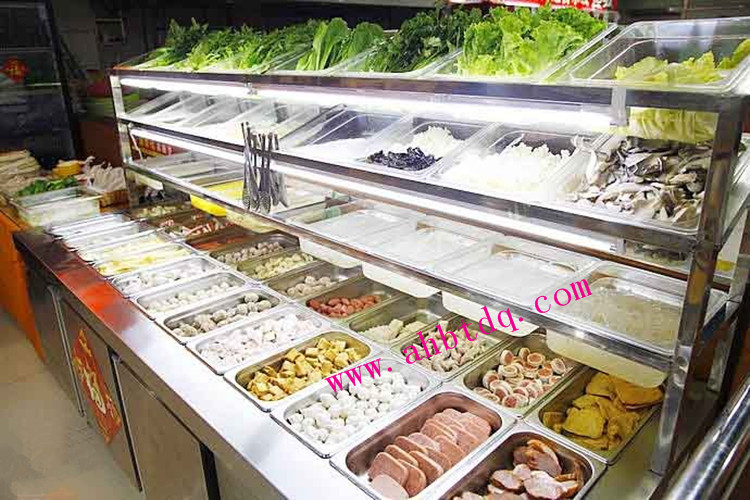 1、麻辣烫点菜柜采用不锈钢板制造,精工打造,外观大方得体,质量上乘,使用放心。