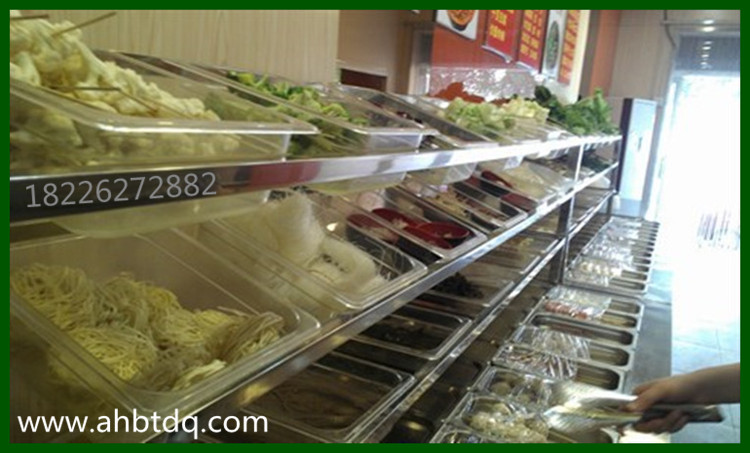 6、麻辣烫点菜柜上面层架可根据客户的具体要求加,上面可制冷也可不制冷。
