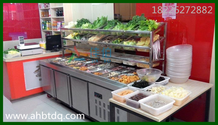 1、麻辣烫点菜柜采用不锈钢板制造,精工打造,外观大方得体,质量上乘,使用放心。