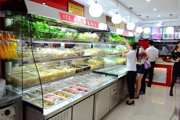 1、麻辣烫点菜柜采用不锈钢板制造,精工打造,外观大方得体,质量上乘,使用放心。
