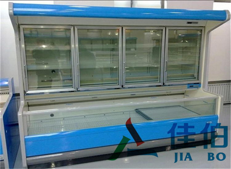 5、多层搁板**组合,角度可调,双排照明灯,展示效果更好;化霜过程采用化霜温度和化霜时间双重控制,节省电能。控制器有电子式和机械式供选择。根据不同的使用要求可以设定不同温度范围。有两种基本规格,可任意拼接,可选配封头柜,并配用45℃和90℃内外拐角。供应吉林双温子母柜厂家 冷藏冷冻于一体的双温双控子母柜