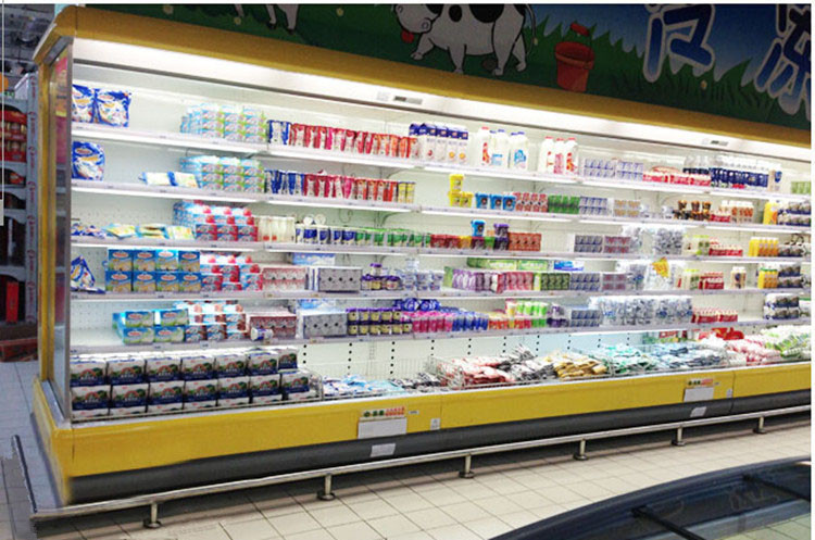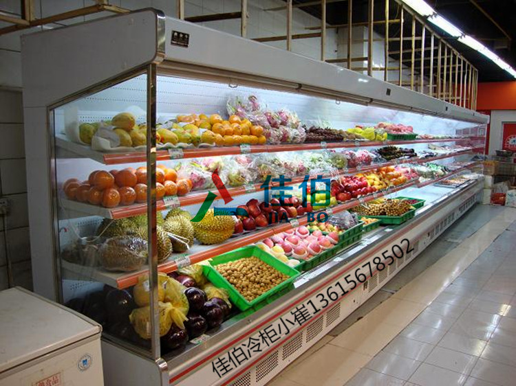 风幕柜正常设定的温度在2-8℃之间,在超市里主要放饮料,酸奶,牛奶,真空包装的肉食,熟食,水果等,不适合放裸装食品。风幕柜分为内置机和外置机两款。