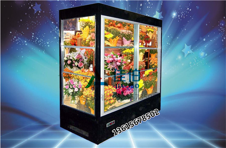 主要原料:金属、玻璃、冷冻设备、加湿器等。直冷鲜花柜、风幕鲜花展示柜、豪华弧面风幕鲜花柜、风冷鲜花保鲜展示柜、新型鲜花柜、超豪华鲜花保鲜展示柜、豪华矮立风冷花柜等。 B、鲜花放置在保鲜柜内可保持30-50天不枯萎,保持新鲜。可供宾馆、花店等场合使用。技术数据(如1.2米柜玻璃门柜):1.有效容积980L;2.温度5℃~15℃;3.功率700W;4.相对湿度85%;推拉门式进出方便。10℃~15℃及85~100%温度、湿度自动控制。 C、内部花架可高低自由调整。玻璃采用中空玻璃,鲜花可以清晰可见。