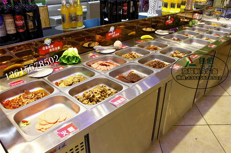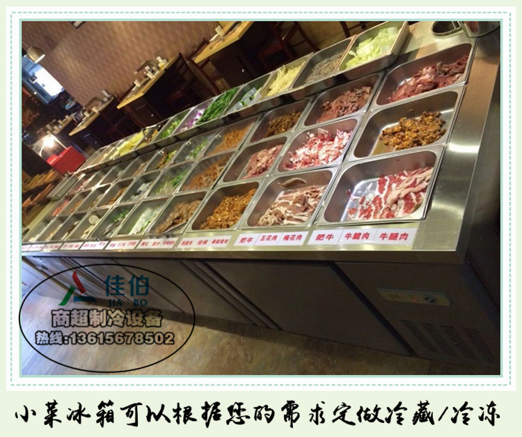 5、小菜冰箱可根据客户具体需要定做成冷藏/冷冻,刚让你更加贴心的服务,台面可以展示各种小菜,起到良好的保鲜及展示作用。