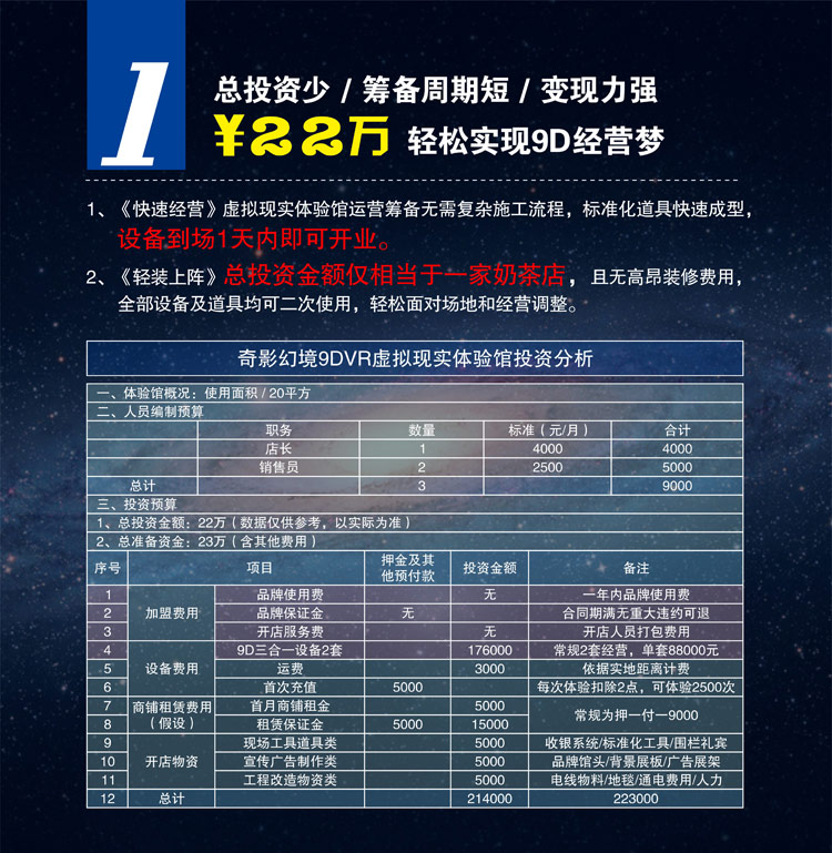 奇影幻境凭借多年的互动影院和动感平台制造技术,成功搭建全新9Dvr互动平台,融合虚拟影片内容和三维仿真技术,推出9D虚拟现实体验馆软硬一体化解决方案。新一代的9Dvr体验终端使内容、技术和设备有机结合,打造新虚拟娱乐商业平台。同时,奇影幻境和3glasses合作为虚拟现实带来全新的体验模式,使得虚拟现实更加商业化。