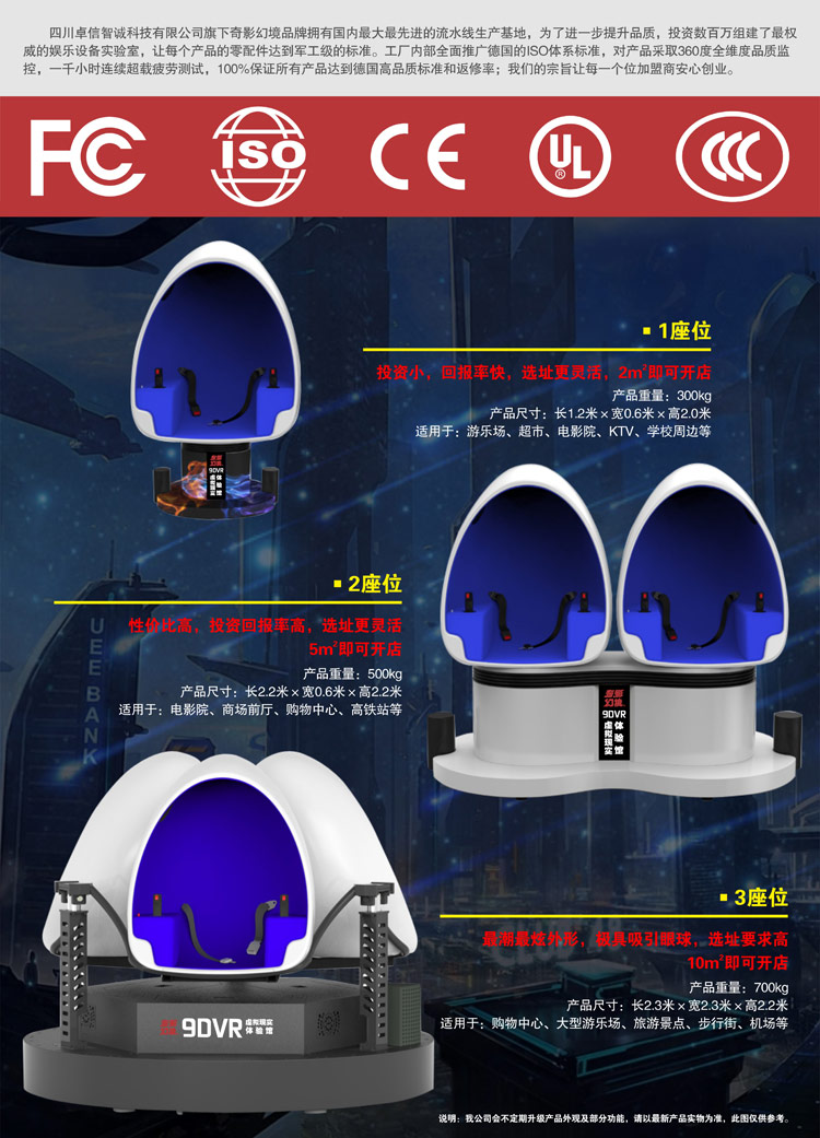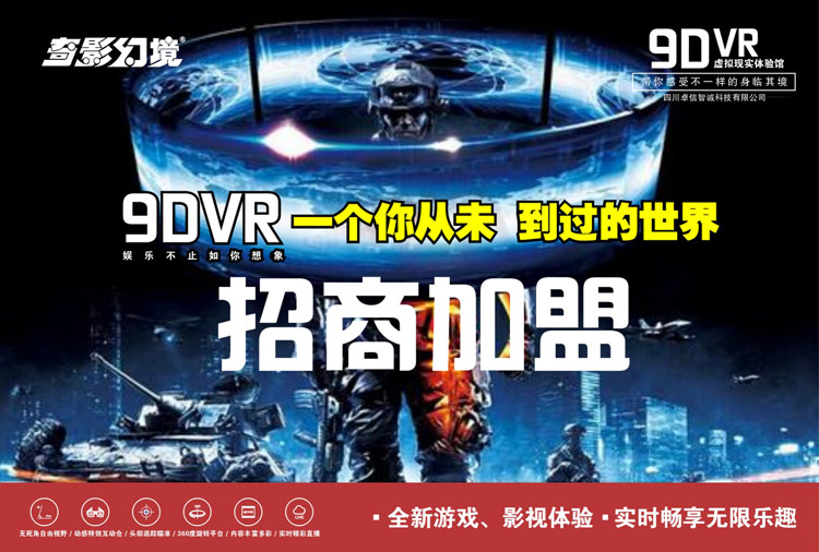 0同类产品!0竞争对手!9D让虚拟现实不再高冷,而是真正成为变革大众娱乐生活习惯的新型娱乐方式,成为广大投资者进军互动娱乐行业的全新产业机会。