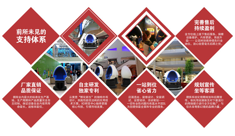 国内虚拟现实领域领航者奇影幻境给加盟商算了这样一笔账,“一个线下9DVR体验店只需要十几平的门面,也可以直接在商场租一块空地,一套奇影幻境3人座9DVR,假设每天营业有5小时满场,每部影片5分钟左右,放映60场。单场最多可3人同时进行体验,若每人票价为25元,则一天盈利估算为4500元,一月盈利可高达13.5万左右。”奇影幻境负责人表示,奇影幻境会为加盟商们源源不断地提供“体验内容”,如新游戏、新电影、新设备等,保持奇影幻境9DVR加盟店稳定发展。