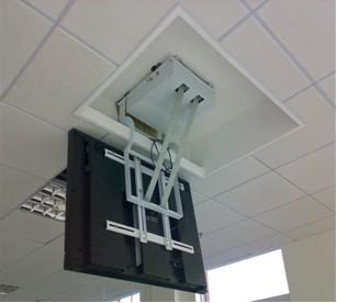 2.占空间少:等离子(液晶)电视天花翻转器 是针对真假天花空间小的需求而设计。可安装在真假天花只有450mm之内的天花上。